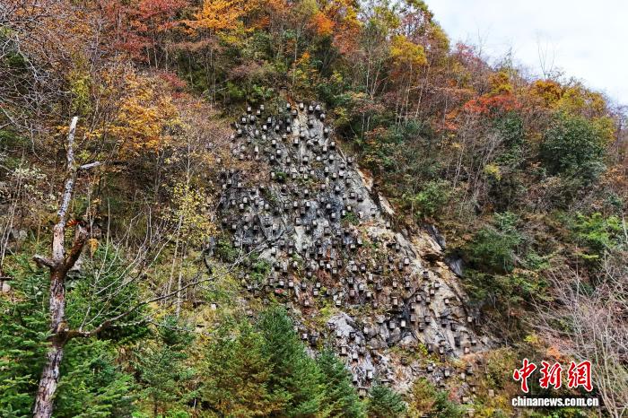 图为神农架林区内乱的“危崖蜂箱”。税浪 摄
